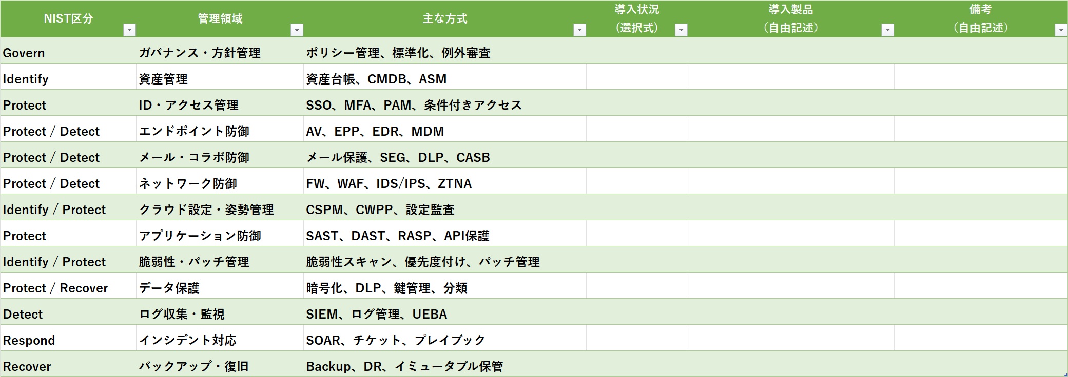 ※2 自社セキュリティ製品状況確認ヒアリングシート(以下、イメージ)